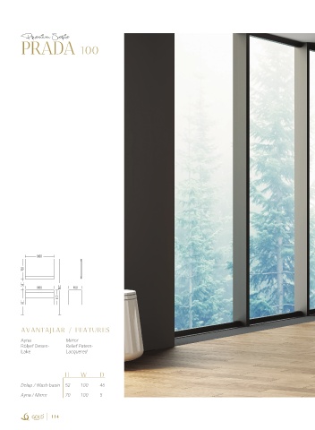 Premium Serie PRADA 100 1000 700 380 1000 1930 460 560 850 AVANTAJLAR / FEATURES Ayna Mirror Rölyef Desen- Relief Patern- Lake Lacquered H W D Dolap / Wash basin 52 100 46 Ayna / Mirror 70 100 5 114