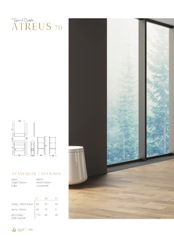 Trend Serie ATREUS 70 650 830 250 1990 1100 840 700 420 400 400 AVANTAJLAR / FEATURES Ayna Mirror Rölyef Desen- Relief Patern- Lake Lacquered H W D Dolap / Wash basin 84 70 42 Ayna / Mirror 90 70 5 Boy Dolap / 110 40 40 Side Cabinet 124