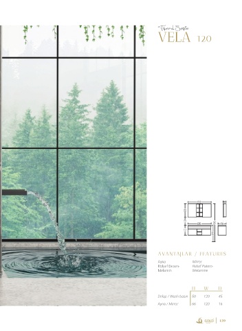 Trend Serie VELA 120 1200 154 680 420 1200 1930 450 490 830 AVANTAJLAR / FEATURES Ayna Mirror Rölyef Desen- Relief Patern- Melamin Melamine H W D Dolap / Wash basin 50 120 45 Ayna / Mirror 66 120 16 139