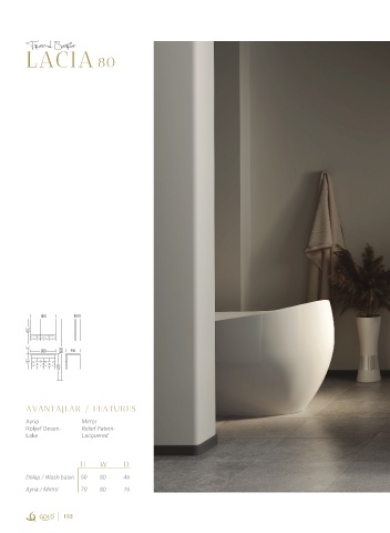 Trend Serie LACIA 80 800 160 690 410 800 1930 450 495 830 AVANTAJLAR / FEATURES Ayna Mirror Rölyef Desen- Relief Patern- Lake Lacquered H W D Dolap / Wash basin 50 80 46 Ayna / Mirror 70 80 16 152