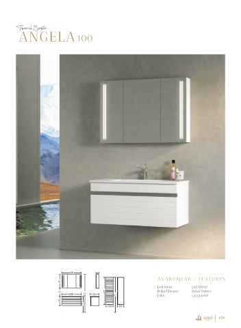 Trend Serie ANGELA 100 1000 155 AVANTAJLAR / FEATURES 690 Led Ayna Led Mirror 410 1390 Rölyef Desen Relief Patern 1000 1930 455 1790 Lake Lacquered 490 830 380 320 159