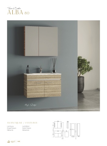 Trend Serie ALBA 80 Açık Meşe 800 150 AVANTAJLAR / FEATURES Led Ayna Led Mirror 690 Rölyef Desen Relief Patern Melamin Melamine 410 1390 800 1930 455 1790 590 830 380 320 168