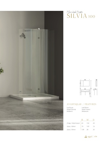 Standart Serie SILVIA 100 1000 150 690 410 1000 1930 460 645 830 AVANTAJLAR / FEATURES Led Ayna Led Mirror Rölyef Desen Relief Patern Melamin Melamine H W D Dolap / Wash basin 65 100 45 Ayna / Mirror 70 100 16 Ayna / Mirror 139 38 32 179