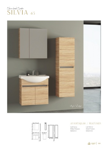 Standart Serie SILVIA 65 Açık Meşe 650 150 AVANTAJLAR / FEATURES 690 Led Ayna Led Mirror Rölyef Desen Relief Patern 410 1390 Melamin Melamine 650 1930 460 1790 645 830 390 320 181