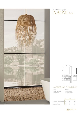 Premium Serie NAOMI 80 700 1000 270 800 2100 460 515 830 AVANTAJLAR / FEATURES Ayna Mirror Rölyef Desen- Relief Patern- Lake Boya Lacquer Paint H W D Dolap / Wash basin 52 80 46 Ayna / Mirror 70 80 3 83